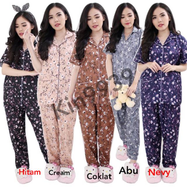 Baju Tidur Piyama Motif Bunga Fashion Wanita 758571432