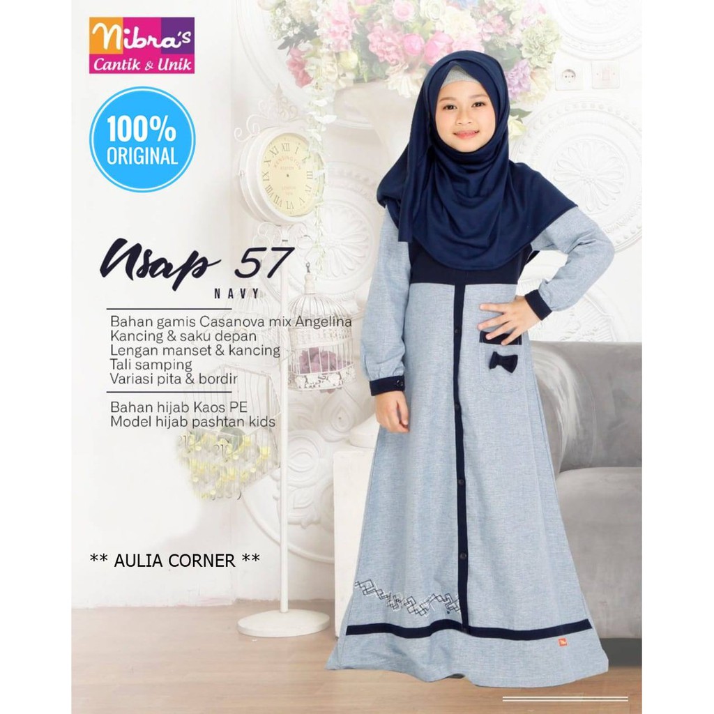 Baju Muslim Gamis Anak Terbaru Nibras Nsap 57 Navy Original Baju