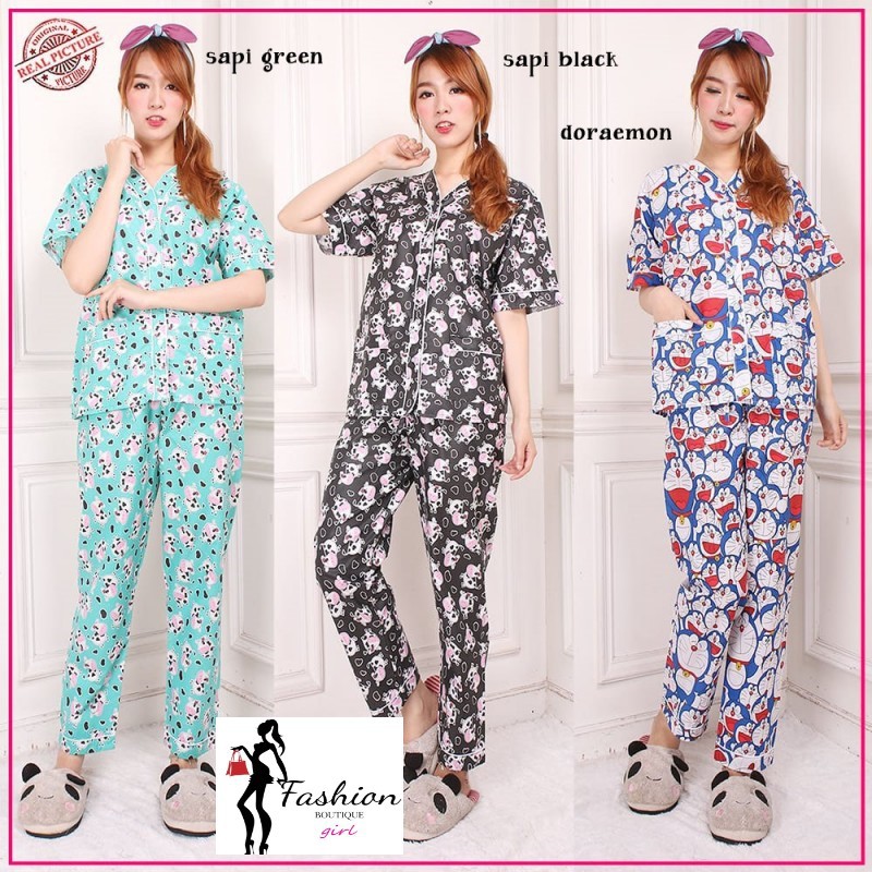 Fpj145 Piyama Baju Tidur Unik Lucu Bahan Nyaman Sapi Doraemon