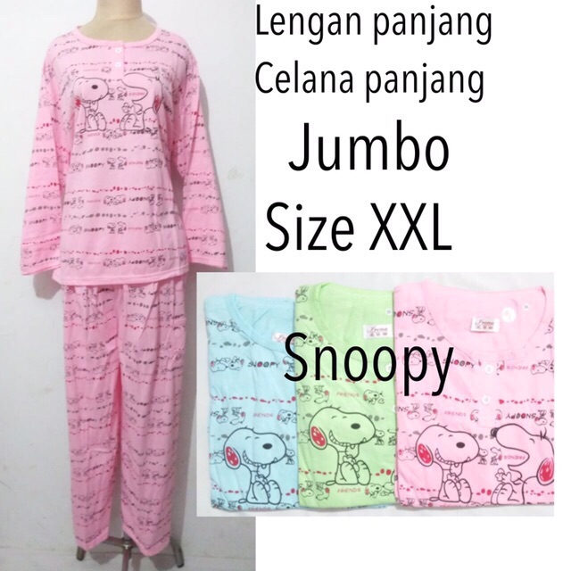 Jual Piyama Baju Tidur Dewasa Wanita Jumbo Lengan Panjang Kaos