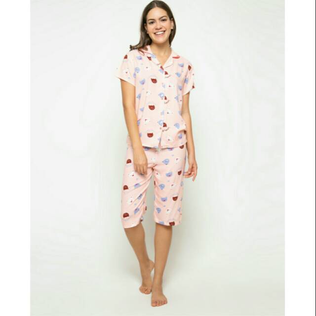 Jual Baju Tidur Dewasa Piyama 3 4 Celana Pendek Lengan Pendek