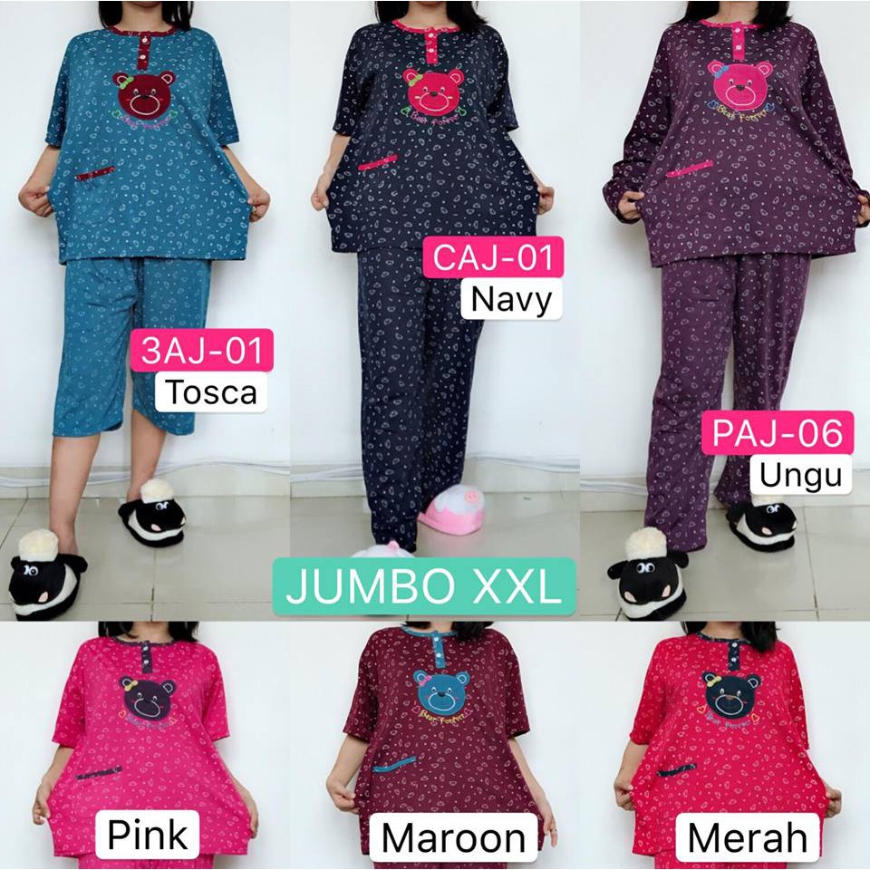Piyama Cp Jumbo Xxl Motif Teddy Bear Beruang Boneka Baju Tidur