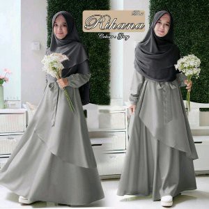 Gamis Dress Baju Muslim Remaja Ori Ummina Premium Caila Teen Abu