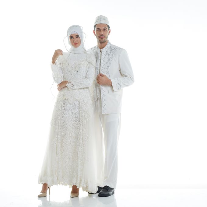 Kebaya Couple Pengantin Muslim Akad Nikah Ijab Kabul Putih Modern
