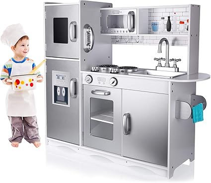 Amazon Com Pidoko Kids Play Kitchen Grey Toy Kitchen Set With