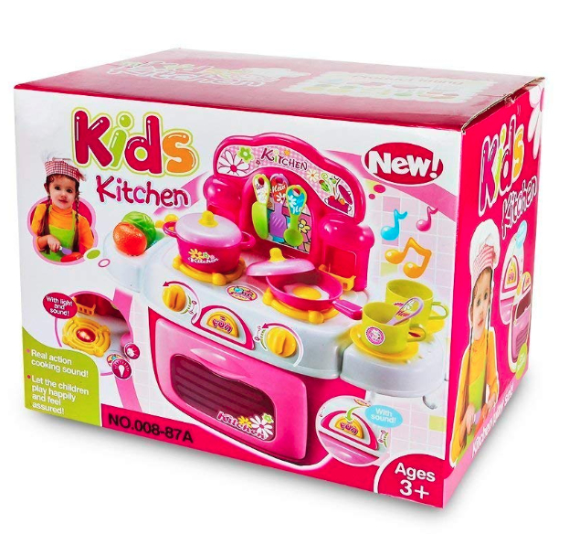 Childs Electronic Pretend Toy Kitchen Role Play Set Lights Sounds