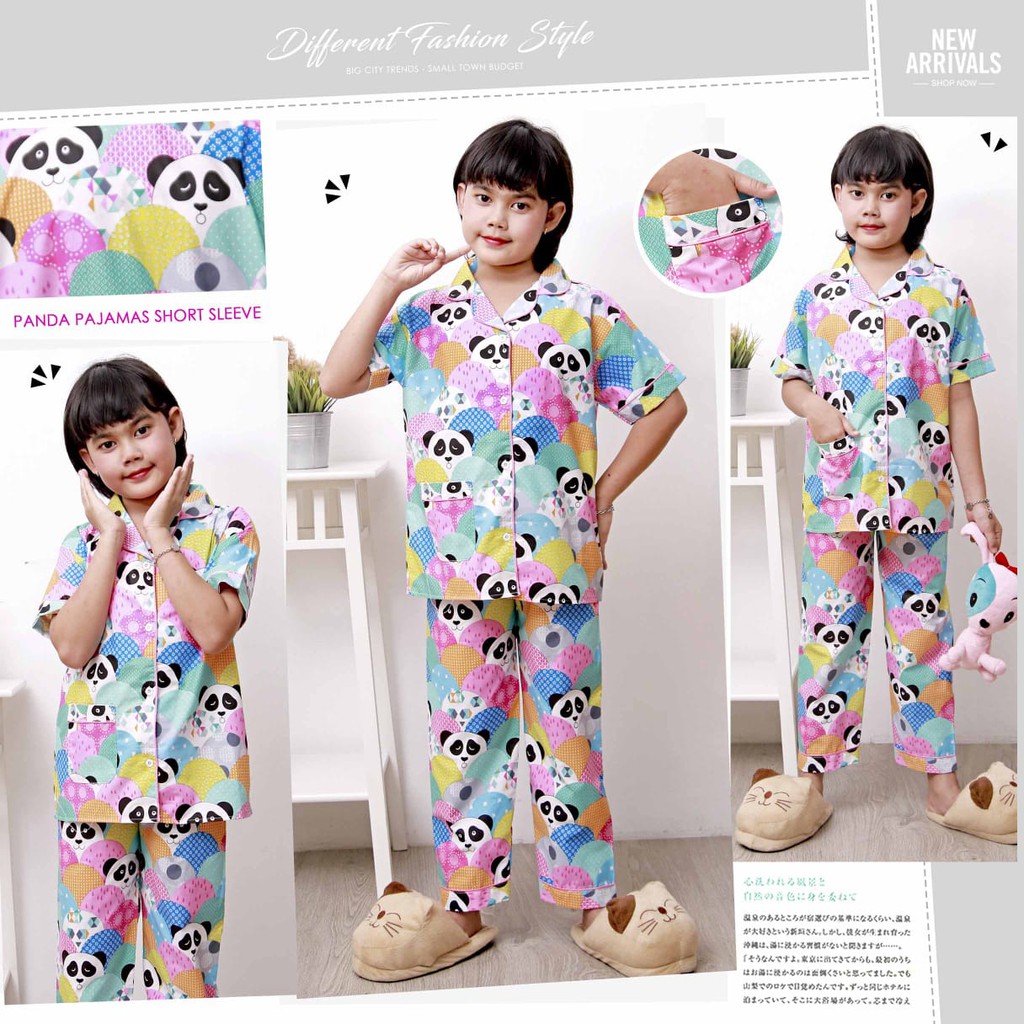 Diskon Baju Tidur Anak Piyama Pajamas Panda Bahan Katun Kancing