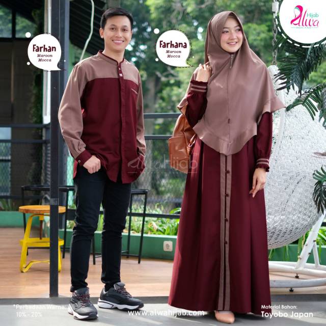Couple Muslim Lebaran Farhan Farhana Set Alwa Hijab Ready Stock