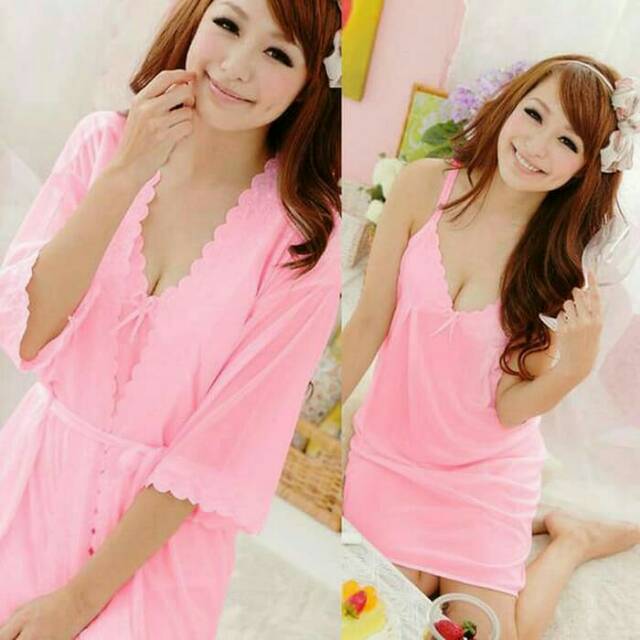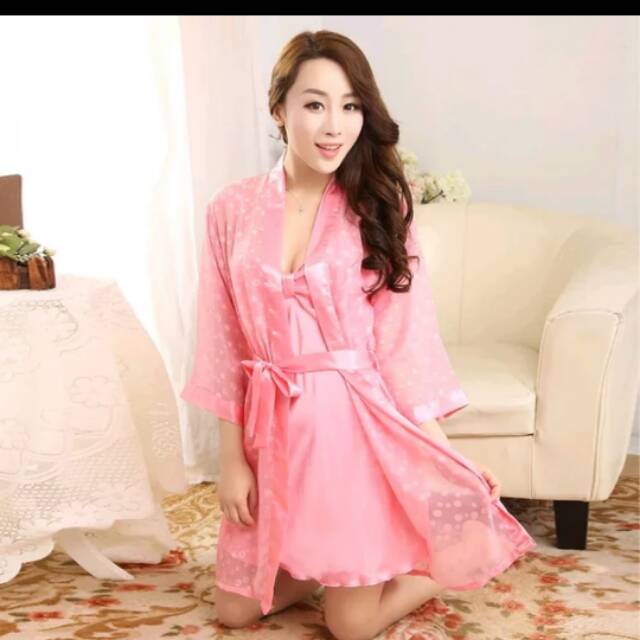 Baju Tidur Gaun Dress Lingerie Cardigan Kimono Set Daster