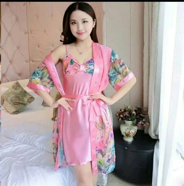 Dspc 2in1 Daster Kimono Bunga Pc26 Baju Tidur Cantik Bisa