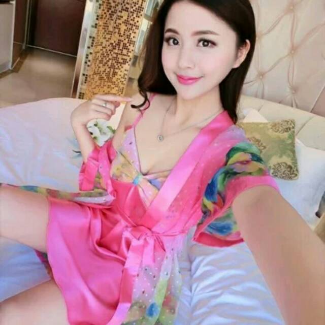 Baju Kimono Tidur Wanita Lingerie Cantik Satin Import Murah