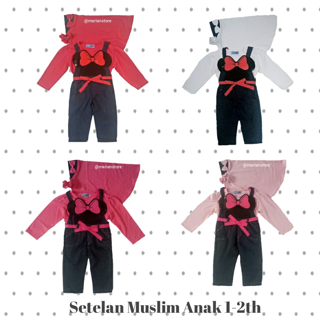 Baju Muslim Anak Perempuan Kaos Celana Overall Jeans 1 2th