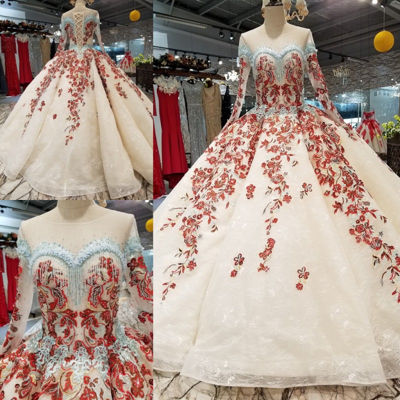 S 2xl Luxury Elegant Long Sleeve Muslim Baju Nikah White Wedding
