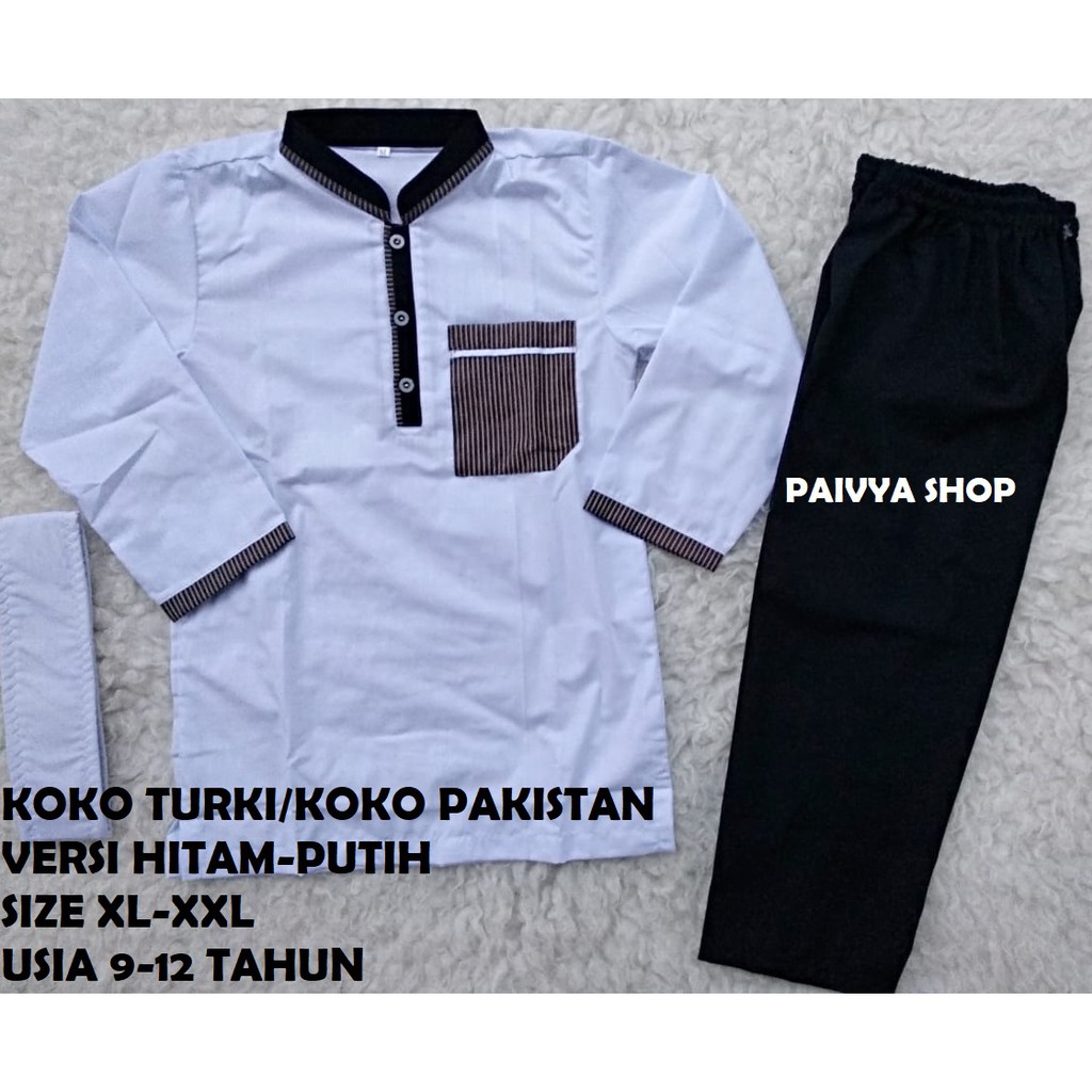 Baju Koko Anak Turki Pakistan Hitam Putih Size Xl Xxl Usia 9 12