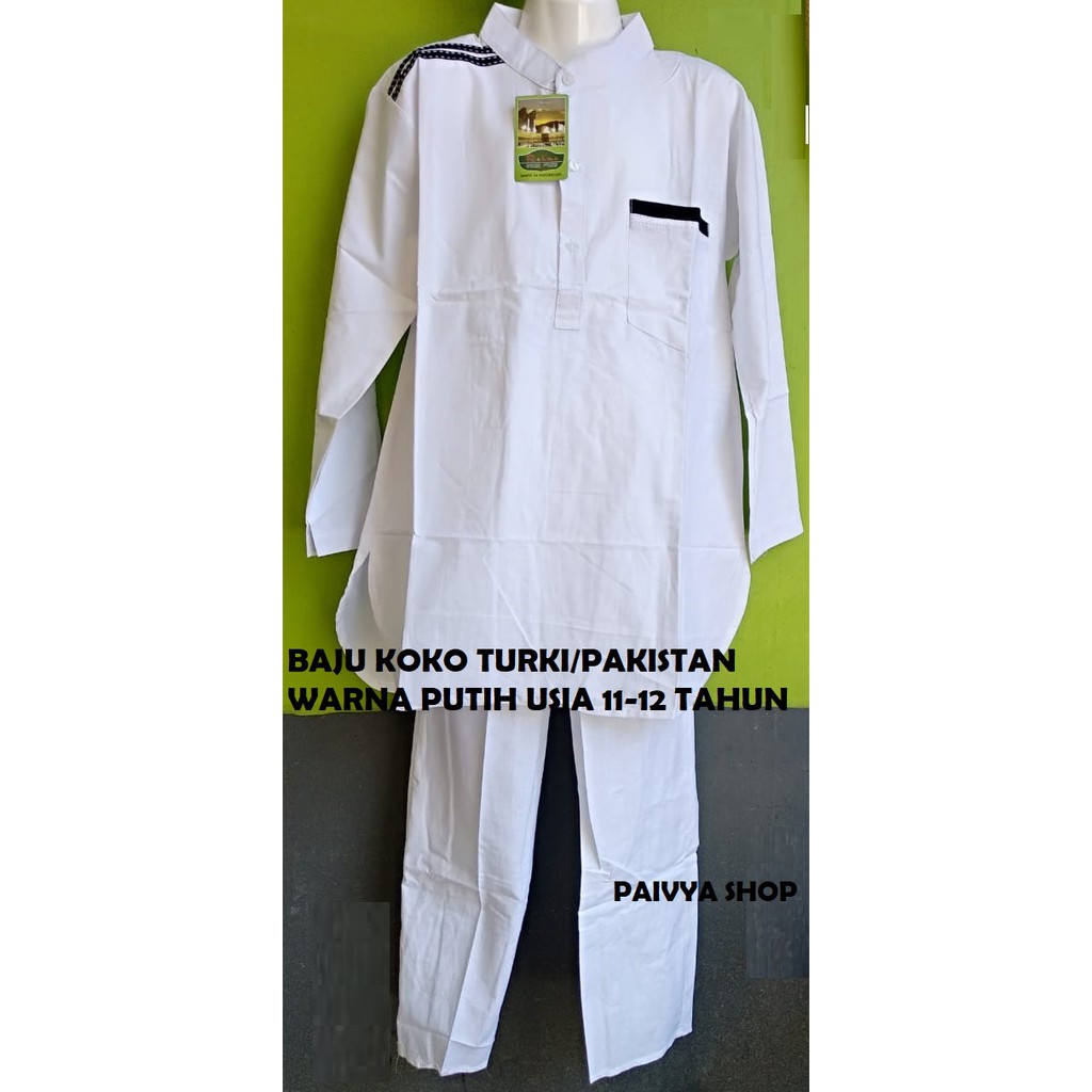 Baju Koko Turki Pakistan Warna Putih Usia 3 10 Tahun Shopee
