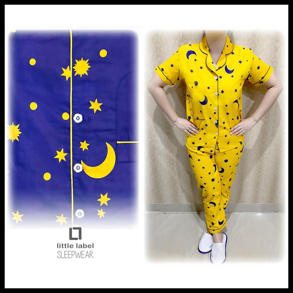 Jual Piyama Pajamas Bulan Bintang Kuning Varian Cp Pp Baju Tidur