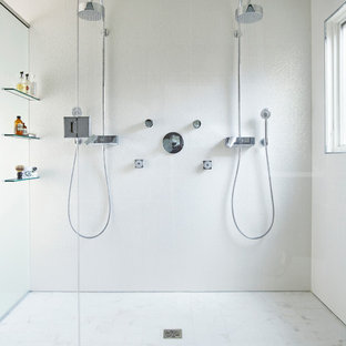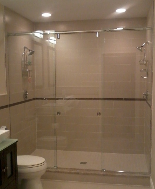 Dual Shower Heads In Walk In Shower Transitional Bathroom