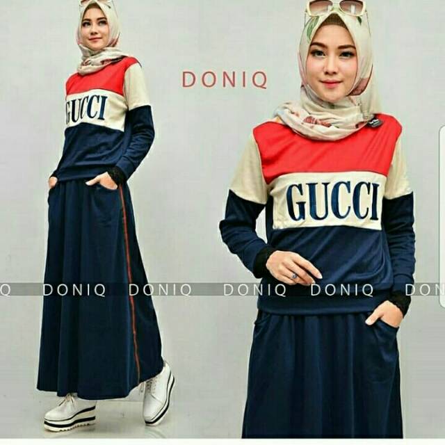 Setelan Rok Dan Baju Muslim Jilbab Gucci