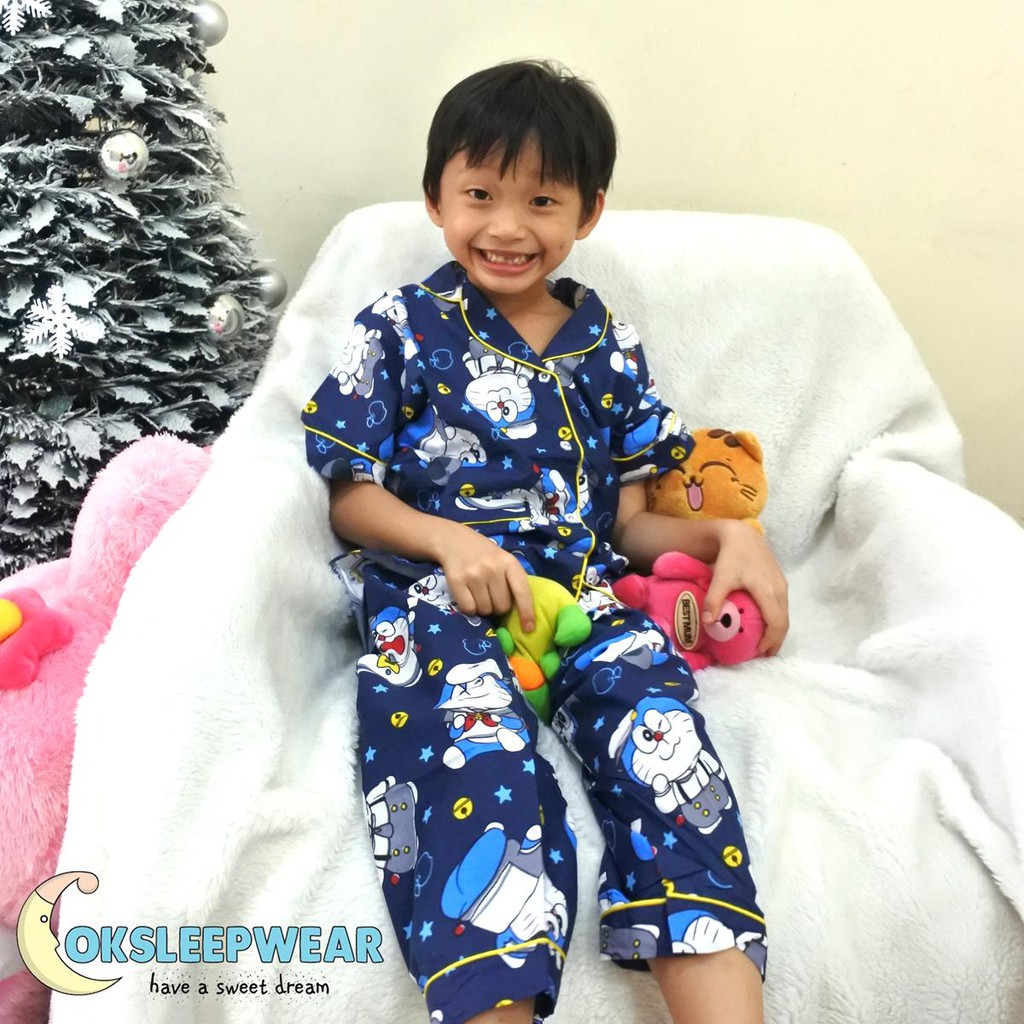 Baju Tidur Anak Laki Laki Cowo Karakter Motif Doraemon Warna Biru