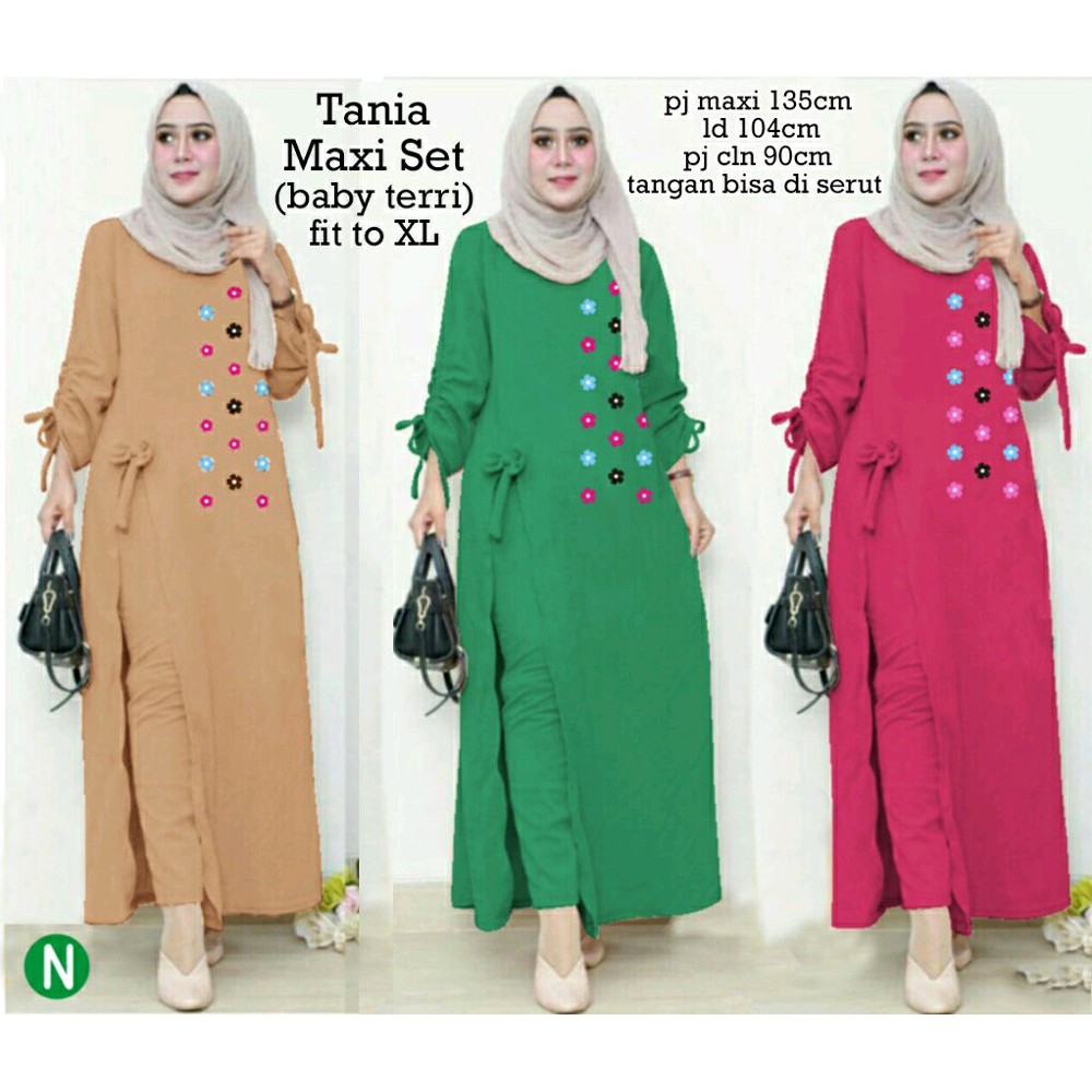 Setelan Baju Muslim Pesta Tunik Blouse Celana Panjang Xl Jumbo