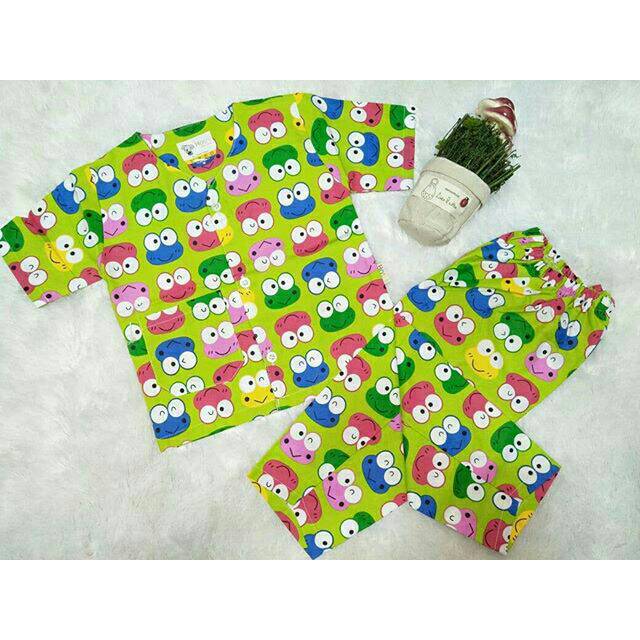 Jual Piyama Baju Tidur Anak Keropi Katun Kancing Depan Kab
