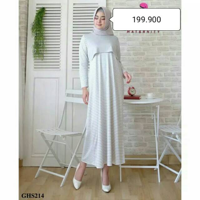 Busana Muslim Hamil Menyusui Baju Pesta Hamil Dress Muslimah Salur