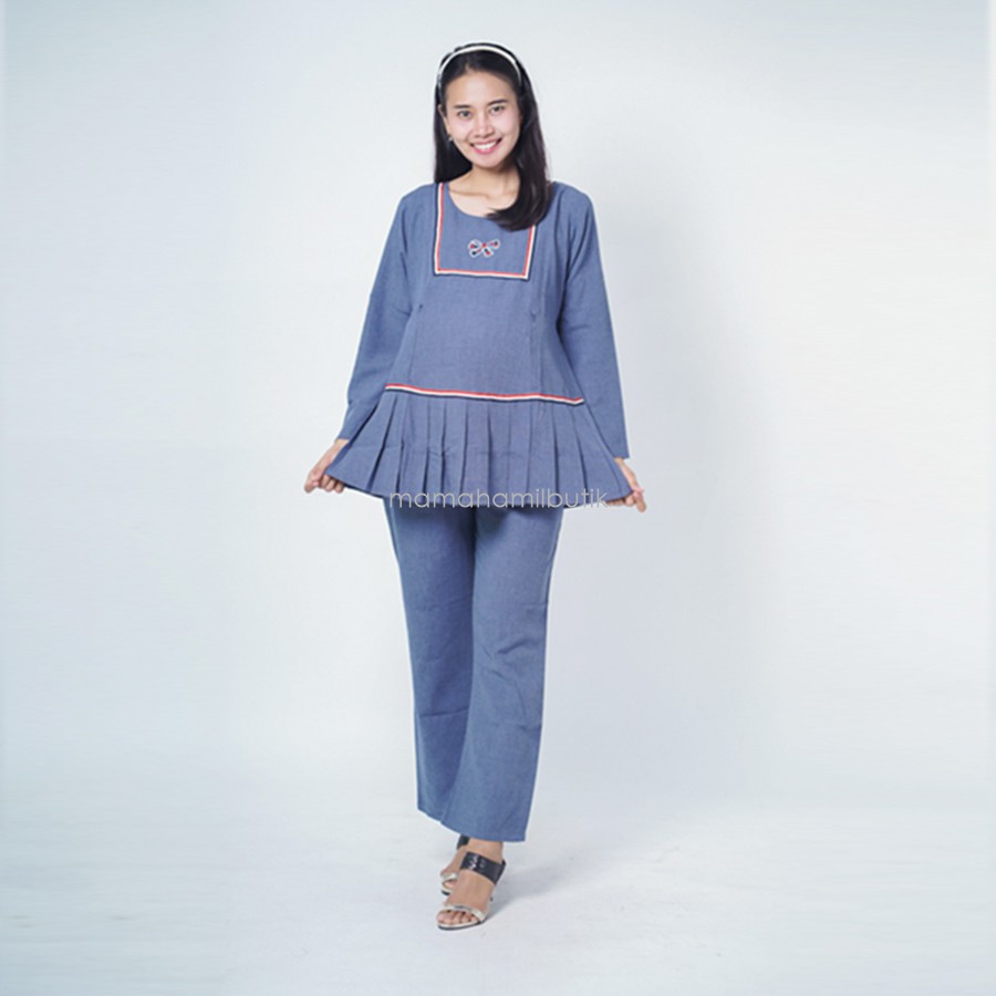 Mama Hamil Baju Setelan Kerja Ibu Hamil Bordir Onthel Misha Cloth