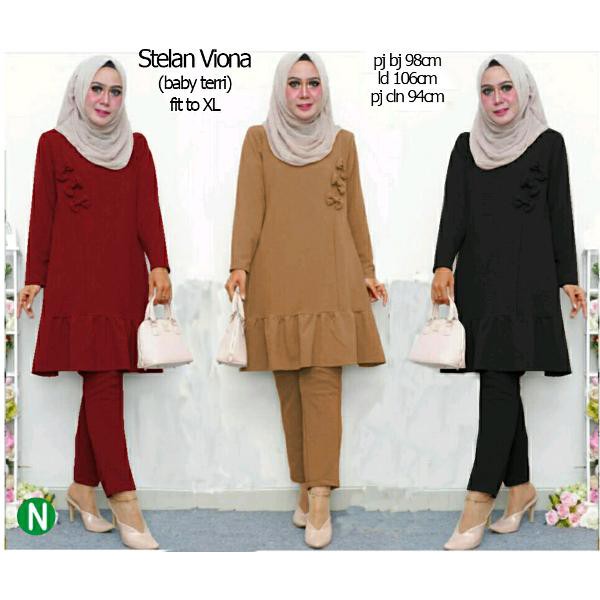 Cn 60387 Stelan Viona Setelan Atasan Bawahan Celana Panjang Hijab