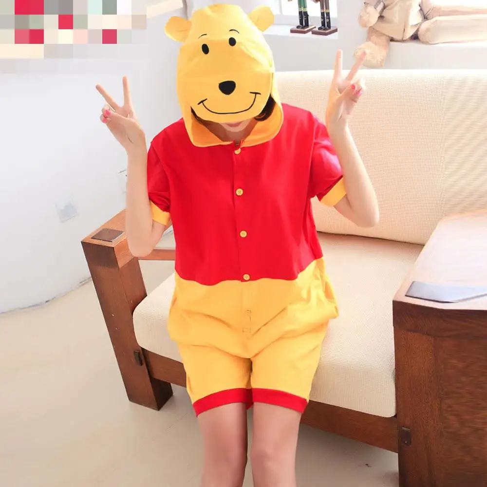Kartun Anime Yellow Bear Cosplay Kostum Terusan Musim Panas Lengan