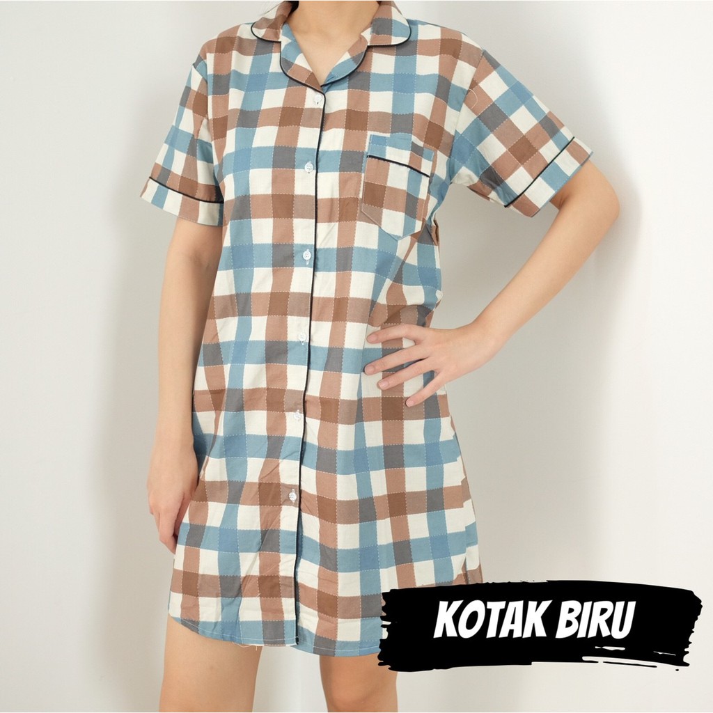 Baju Tidur Piyama Pajamas Kotak Biru Model Sleepdress