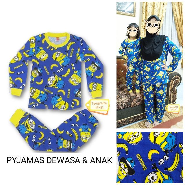 New Pyjamas Dewasa Anak Sedondon Set Minion Banana Pyjamas