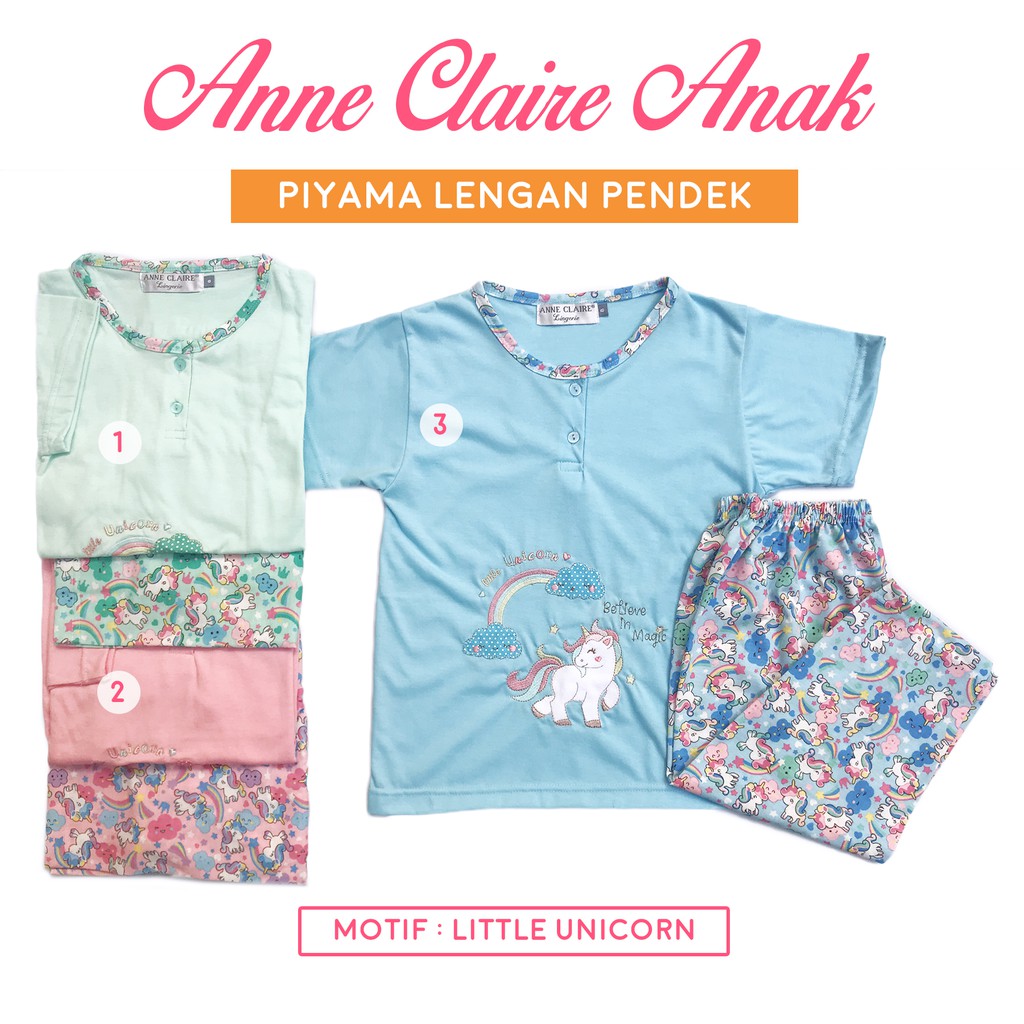 Piyama Cp Unicorn Lengan Pendek Celana Panjang Anak Cewek Anne