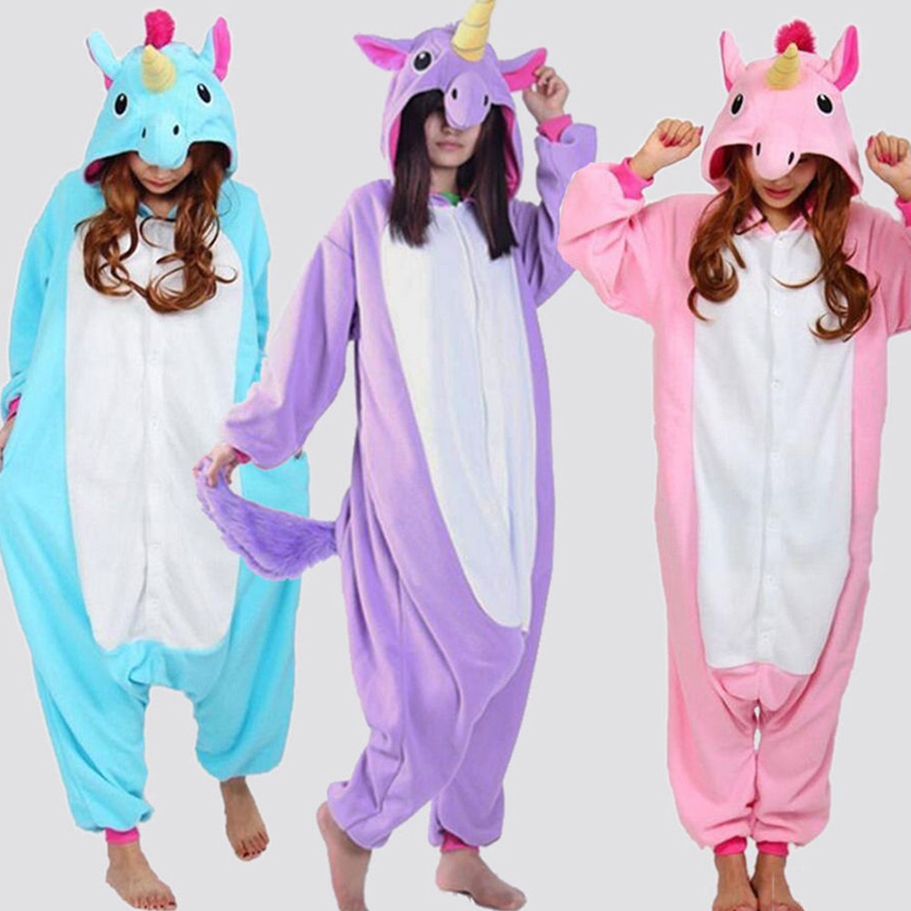 Unisex Cartoon Unicorn Bentuk Pajamas Kostum Hewan Pakaian Kostum