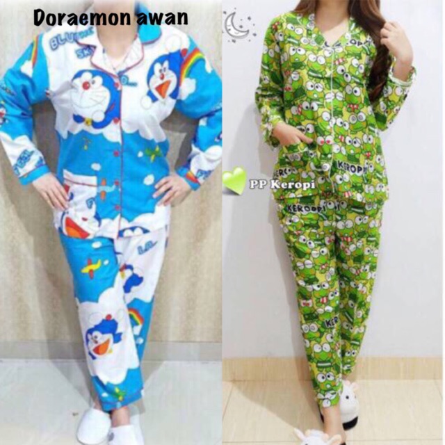 Jual Piyama Baju Tidur Cewe Tangan Panjang Doraemon Keropi Teddy