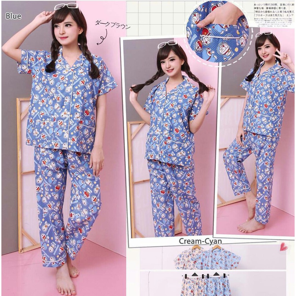 Jual Piyama Wanita Motif Doraemon Baju Tidur Wanita Katun Jepan