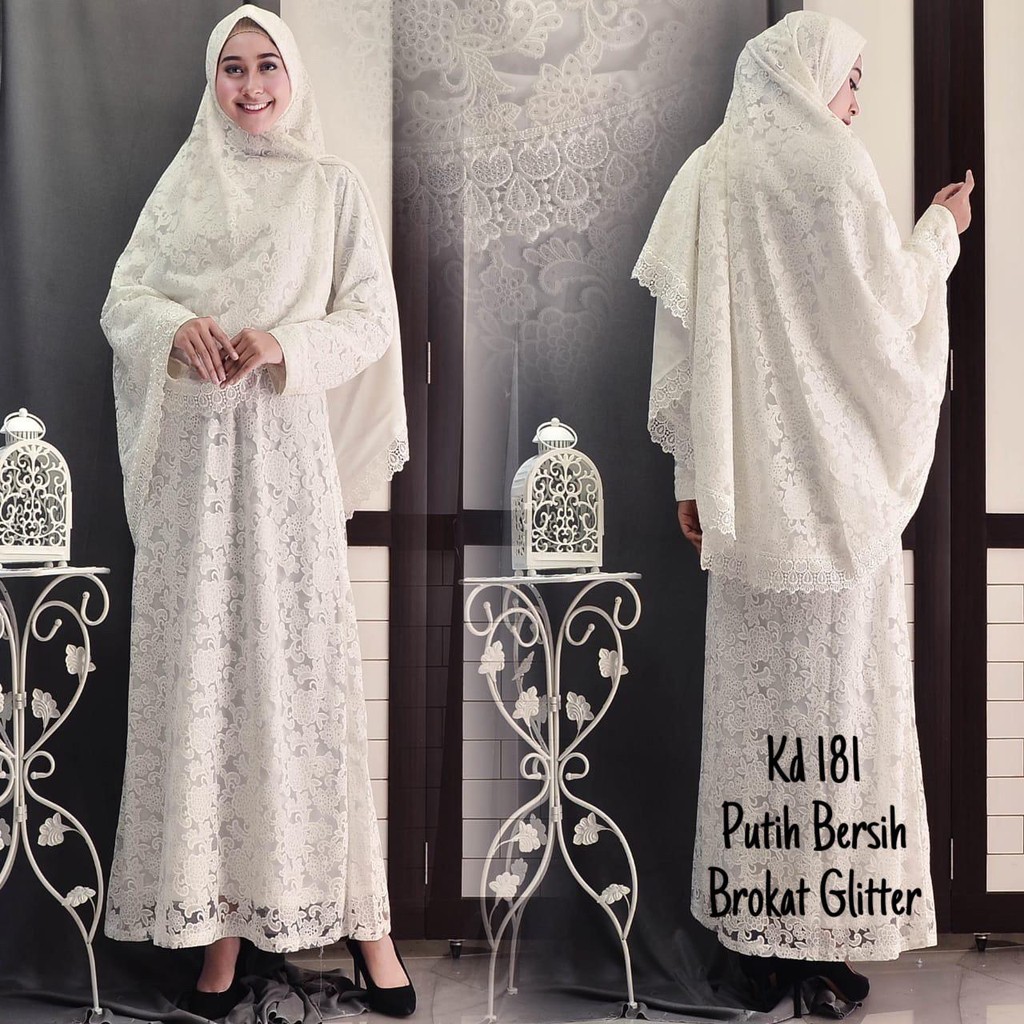 Jual Gamis Syari Putih Brukat Setelan Busana Muslim Wanita Haji