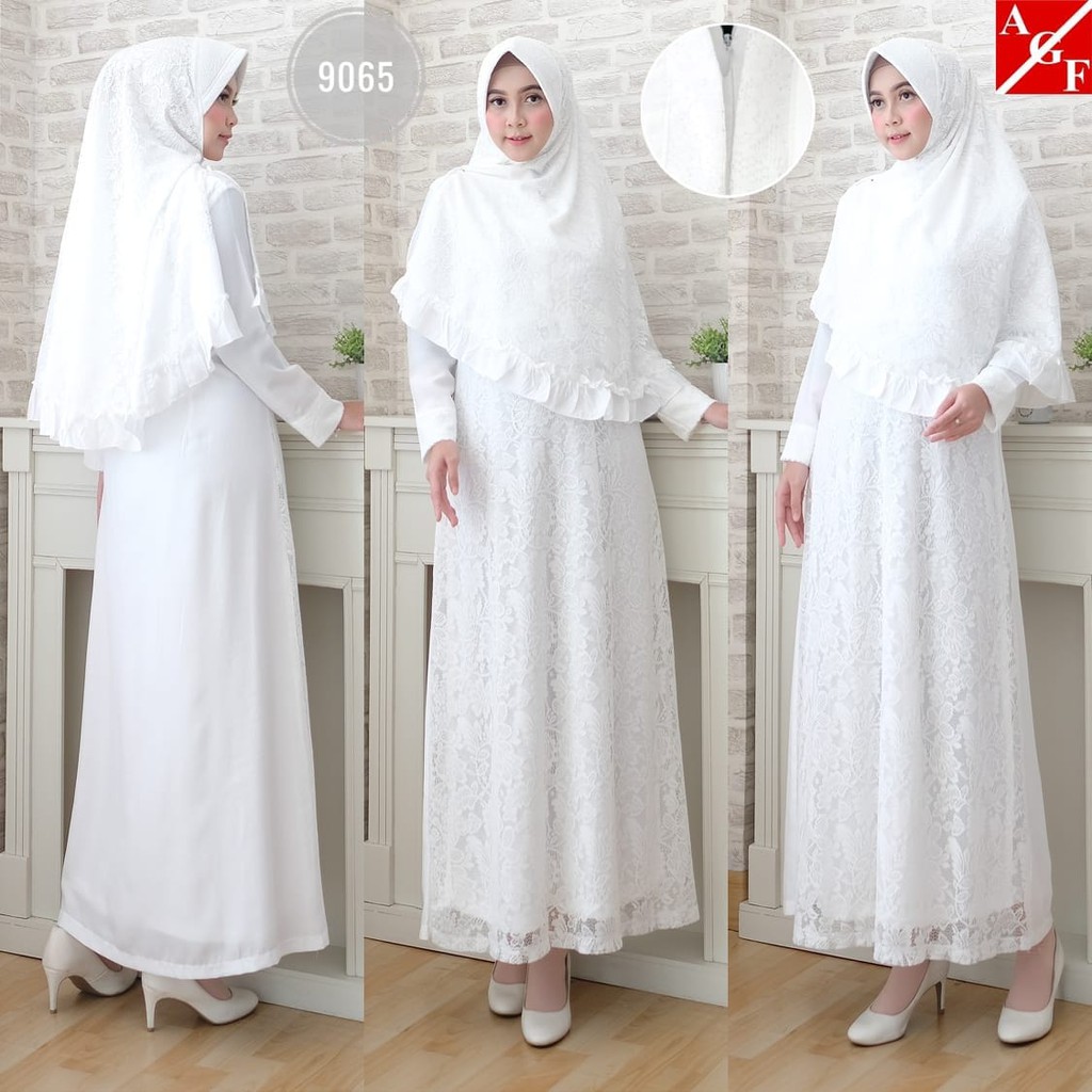 Promo Agnes Baju Gamis Wanita Brukat Gamis Putih Lebaran Umroh