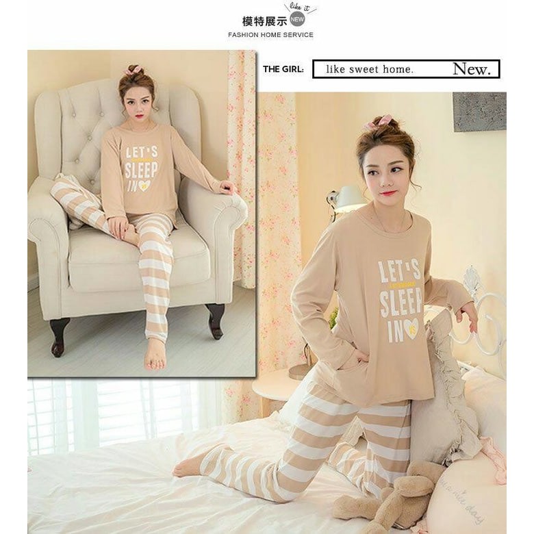 Baju Tidur Piyama Kaos Setelan Panjang Wanita Dewasa Cewek Import
