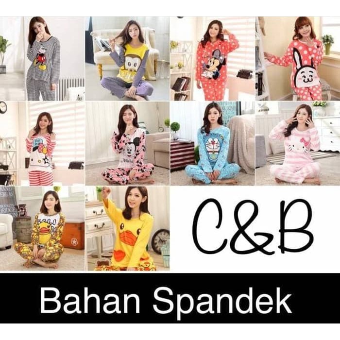 Baju Tidur Setelan Panjang Lengan Pendek Korea Spandek Spandex