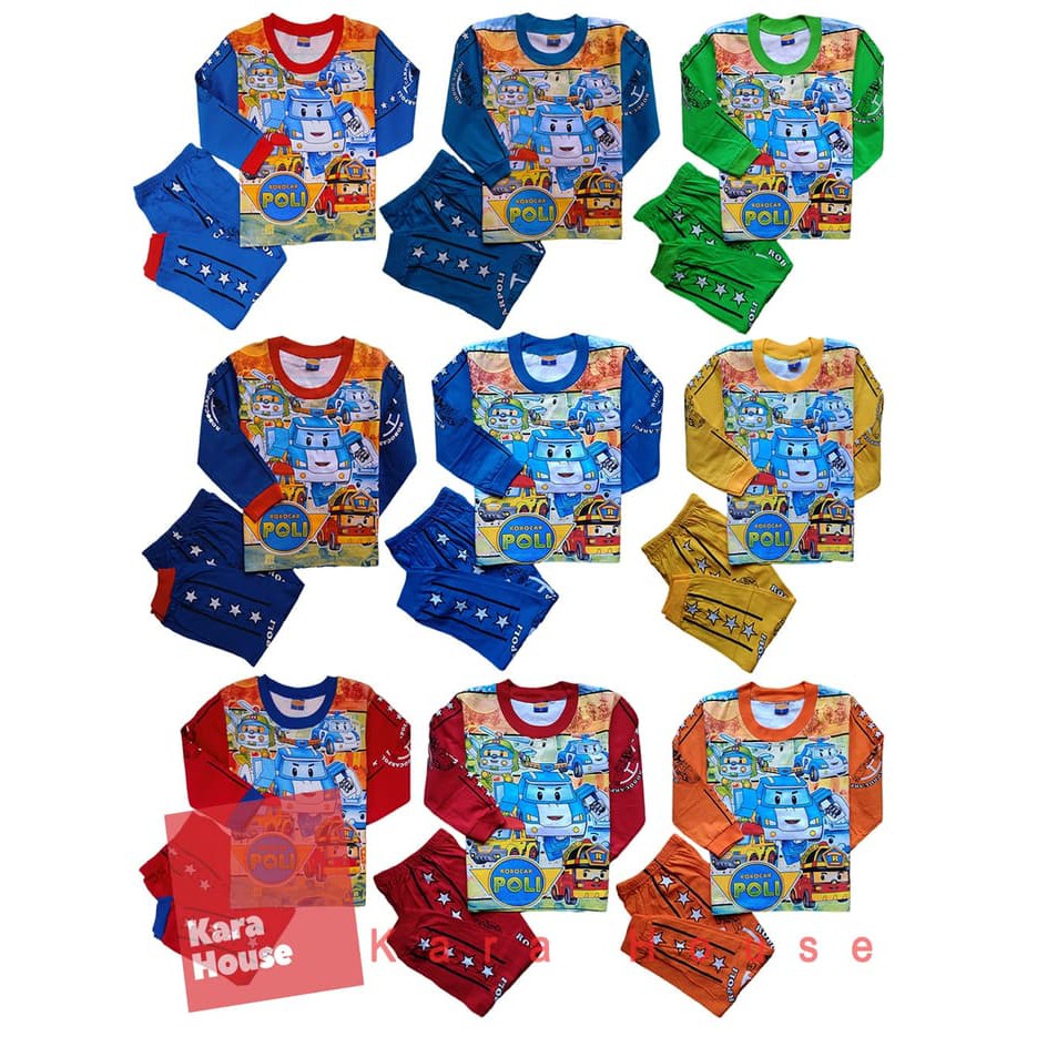 Baju Tidur Setelan Panjang Piyama Atasan Kaos Robocar Poli