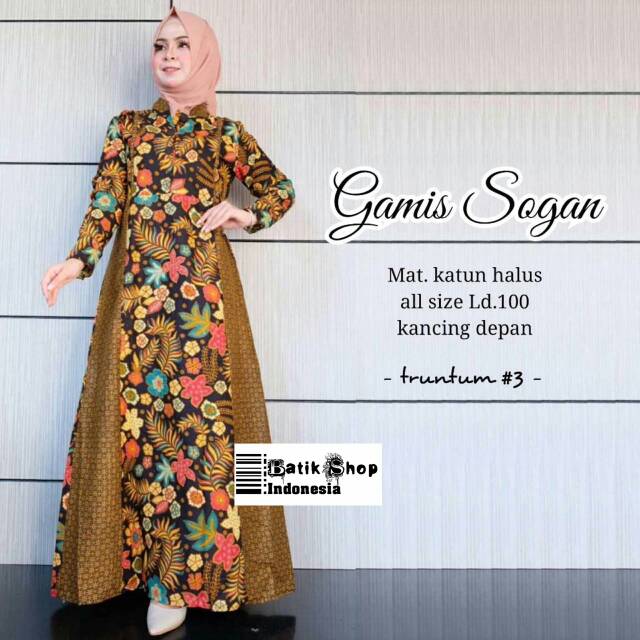 Gamis Sogan Kembang Batik Modern Motif Bunga Davina Baju Muslim