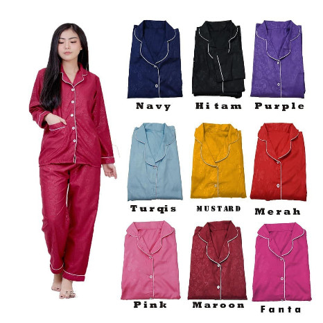 Baju Tidur Wanita Cp Satin Pajamas Basic Pajamas Piyama Lengan