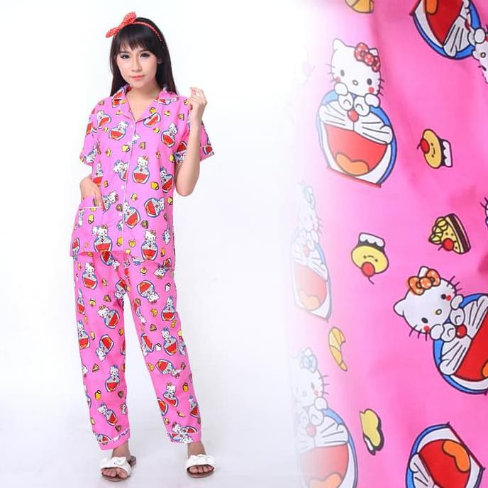 Jual Baju Tidur Piyama Cewek Motif Hello Kitty Katun Jepang Murah