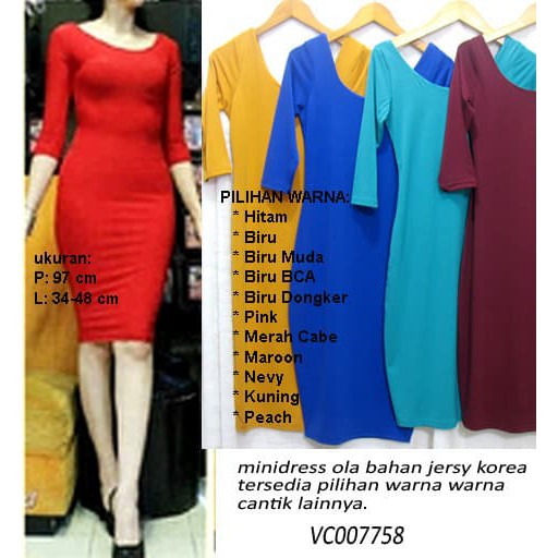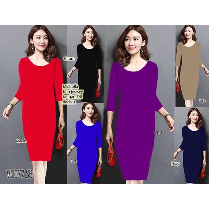 Jual Olla Ramlan Bodycon Midi Minidress Gaun Polos Baju Dress