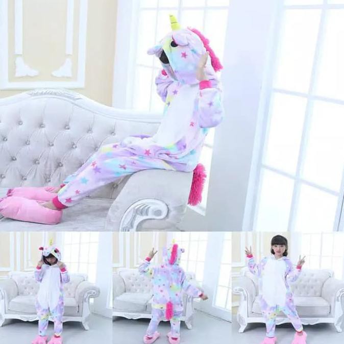 New Baju Tidur Piyama Unisex Anak Onesie Unicorn Bintang Warna