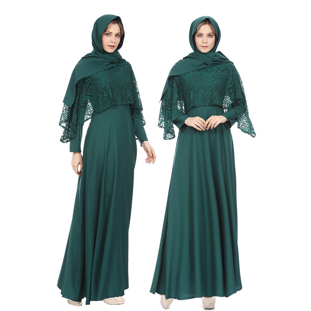 Lace Cloak Style Maxi Dress Muslim Women S Chic Gown Long Sleeves