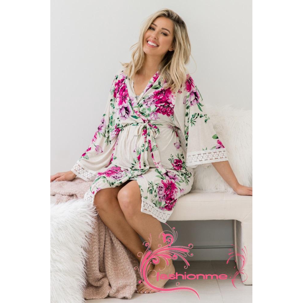 Ffa Pakaian Tidur Wanita Hamil Menyusui Model Kimono Lengan