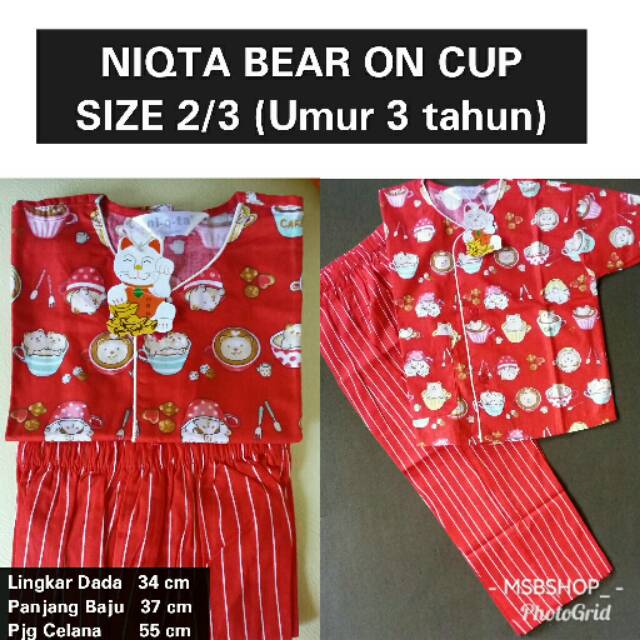 Jual Piyama Anak Katun Niqta Ukuran 2 3 Usia 2 3 Tahun Kota