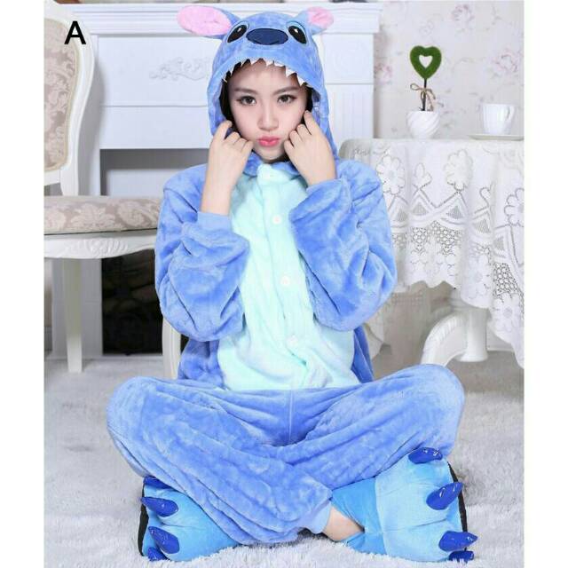 Jual Baju Onesie Boneka Stitch Biru Dewasa Piyama Kostum Size M