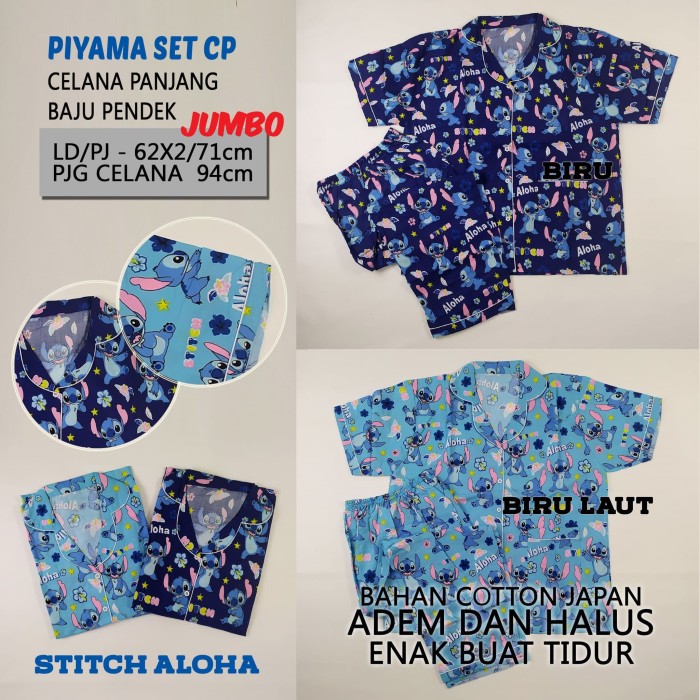 Jual Fasia Baju Tidur Piyama Cp Stitch Aloha Uk Jumbo Jakarta